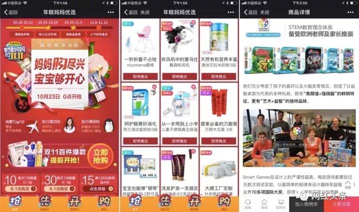一开始年糕妈妈做电商,也离不开单品团购,商家代发,公众号销售这几个环节,这样不仅容易操作,运营也比较轻松。不过后来年糕妈妈做了关于自己的电商品牌"年糕妈妈优选"。