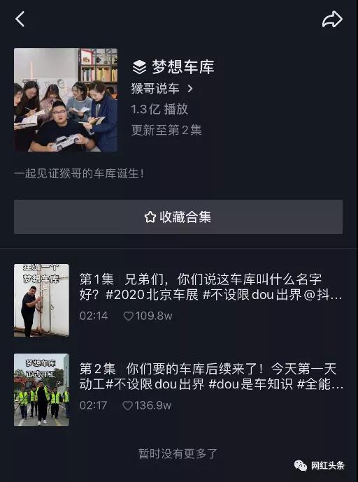 一个优秀账号必然离不开内容IP的搭建。但是猴哥说车在内容IP上目前仅搭建了一个名为"梦想车库"的集合。