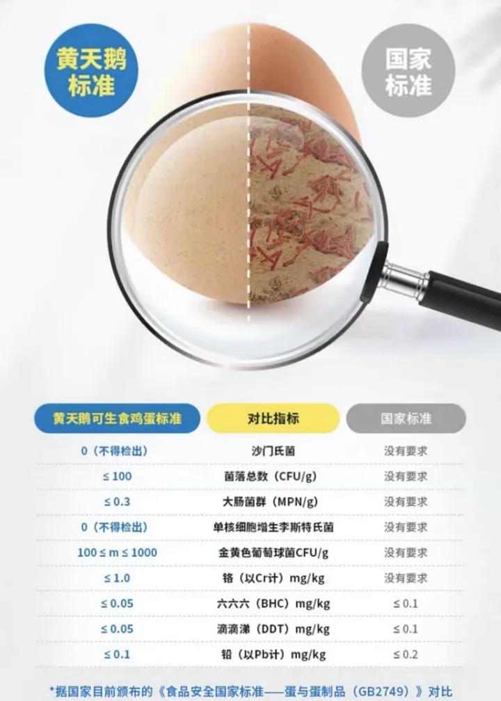 不但严于目前的国标《蛋与蛋制品的食品安全标准(GB2749)》,还新增了未做要求的沙门氏菌、大肠杆菌、金黄色葡萄球菌等6项新指标。