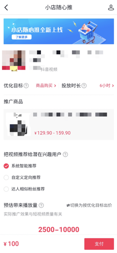 下图是手机端小店随心推,即千川的dou+,和千川后台公用资金,仅支持在移动端投放。这篇文章主要以直播推广为例,教大家在拿到千川之后如何使用,所以对小店随心推和鲁班不再赘述。