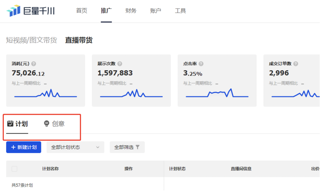 如下图所示,在推广页面取消了广告组层级,只保留了计划和创意层级。这个改动对投放影响不大,但投放时间长了之后账户计划会特别乱。