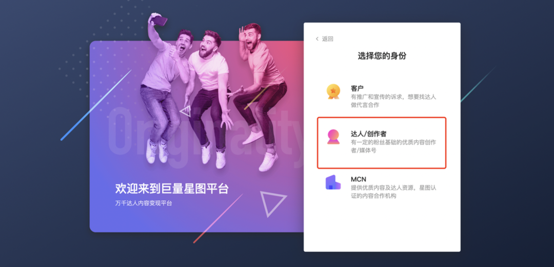 ② 抖音号需选择达人/创作者身份扫码登陆巨量星图一次,如图
