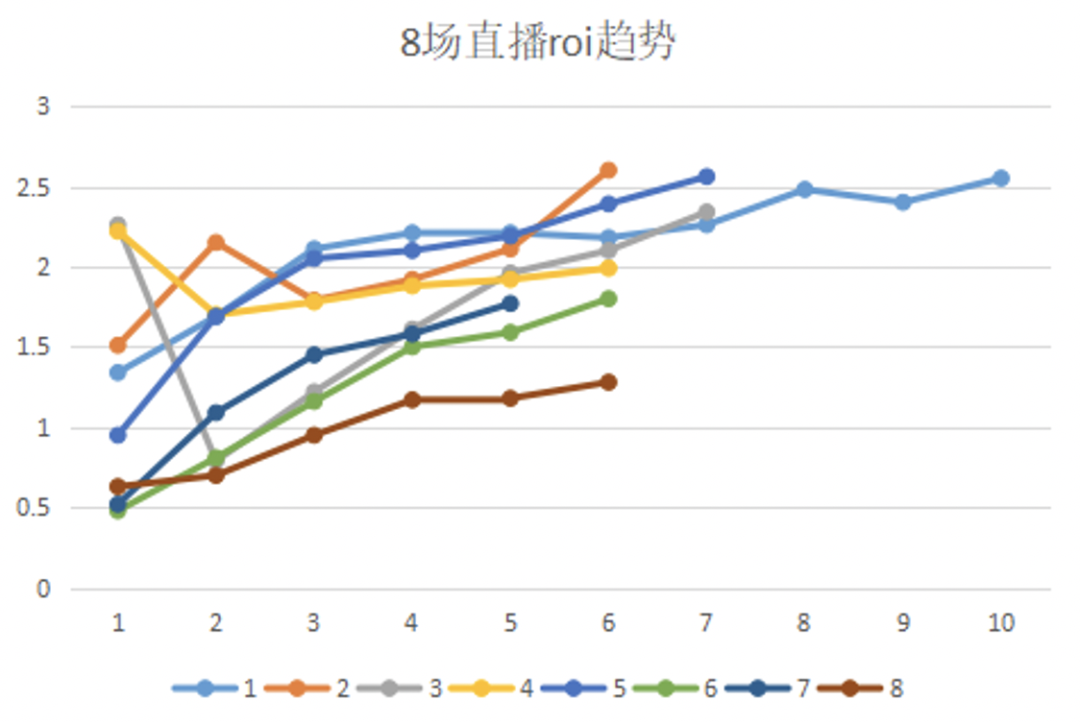 由于一些原因,后面每场测试的都是新的直投计划,而且出价相对偏高,ROI比之前差,但整体上升趋势和之前相差不大。对于刚上手千川的新人来讲,这样的机制相当于多了一层保障。