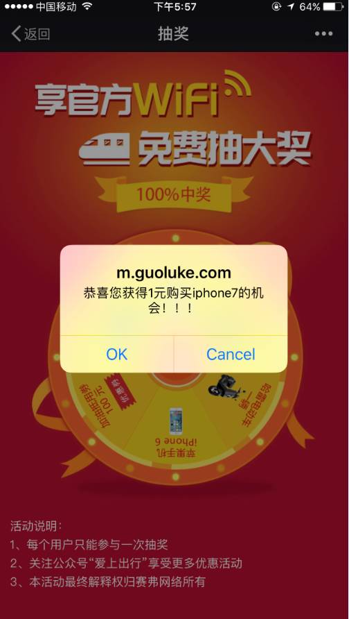 "一不小心"获得1元购买iPhone7"机会",大部分人都会心头一热吧,尤其是坐在三线小城市等待绿皮车的伙计们。