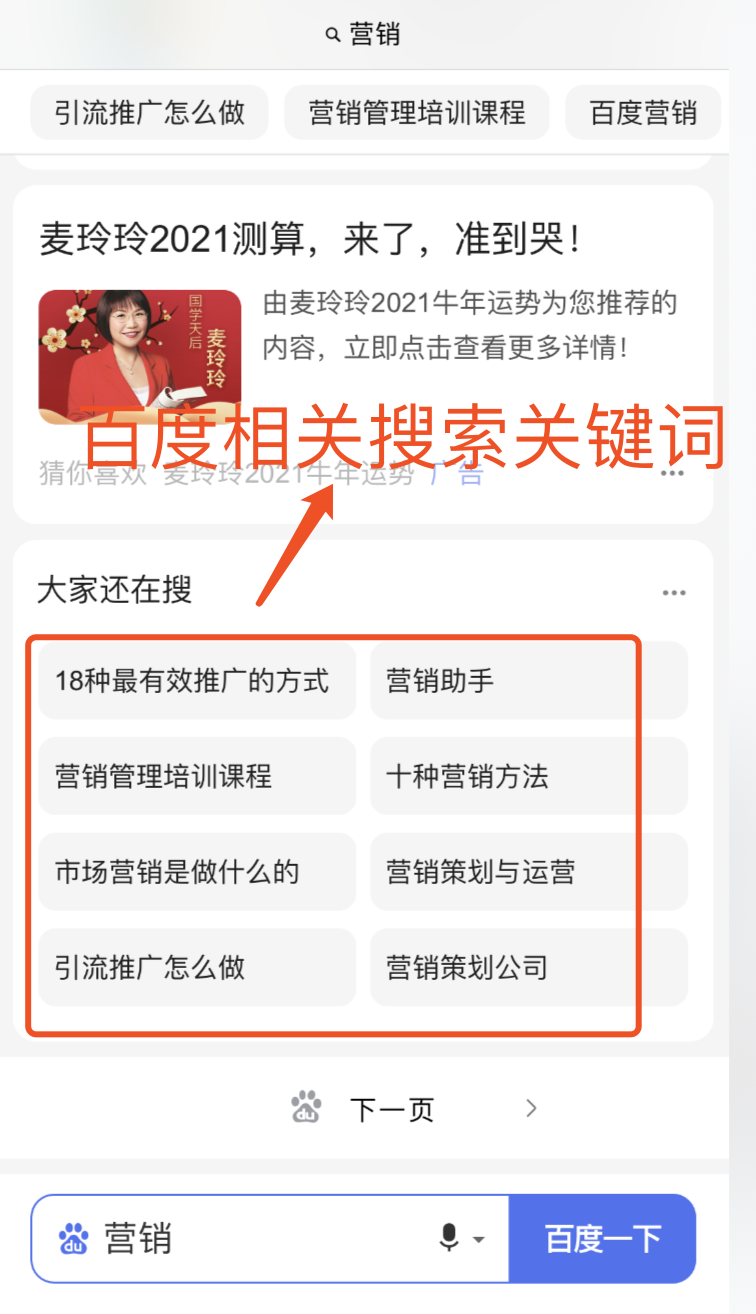 2,综合其他平台相关搜索关键词,例如你可以从百度的相关搜索找关键词