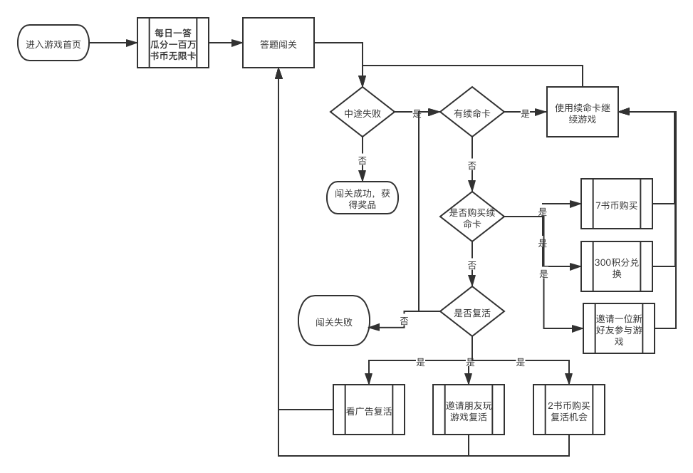 金钱投入:由于每日一答的比赛机制是有次数限制的(每天玩一次),作为没有闯关成功的用户可以花书币来购买复活卡,而书币除了可以读书获得外还可以通过购买的方式来获得,迫切想要闯关成功的用户在一定程度上可能会成为人民币玩家,充值继续完成游戏的解锁。从而更多的投入。