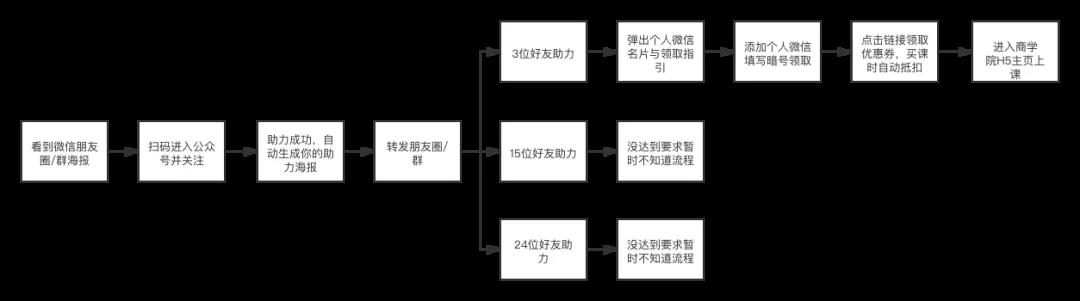 每个人的参与流程都非常简单,几乎只要关注公众号和转发海报即可,0门槛,谁都可以参加。而且第一梯度的奖励只需要邀请3位好友助力即可,通过市场验证,3位好友助力难度不大,可以很容易达成。