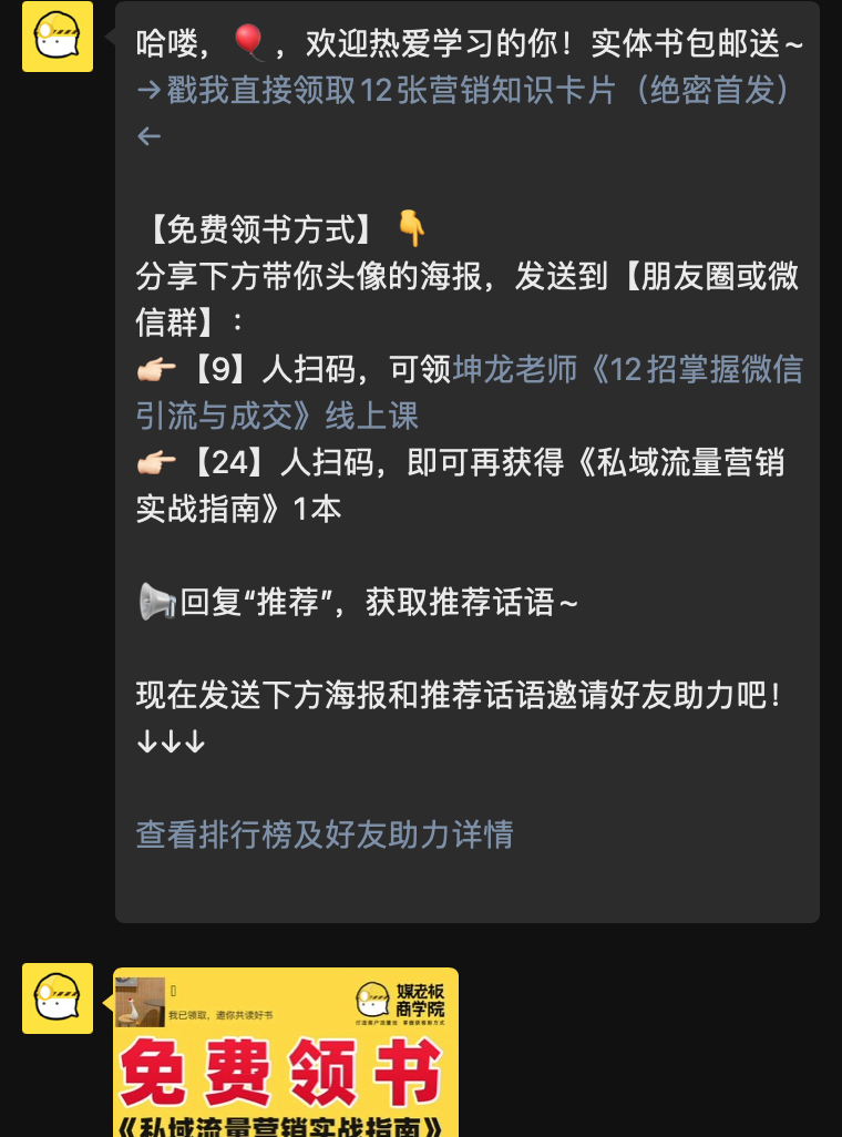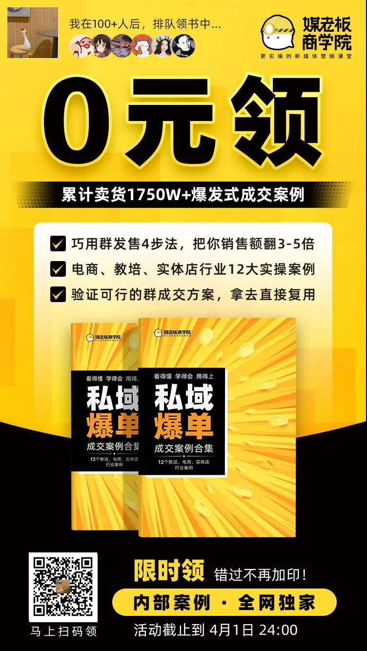 案例名称:【媒老板】0元领私域爆单书活动