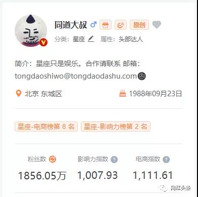 今天我们就给大家拆解一个星座类大号"同道大叔",一个知名星座博主。