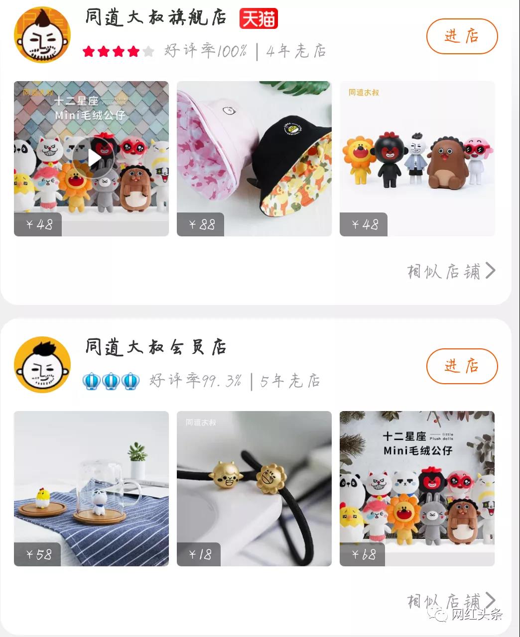 所以同道大叔便开始推出各类衍生物来进行售卖,公仔,服装,动漫,手机壳等等,更是出了两本书:《千万不要认识摩羯座》《有我在,没人敢动你一根寒毛》来进行销售,这些都意味着"同道大叔"正在向着品牌进发。