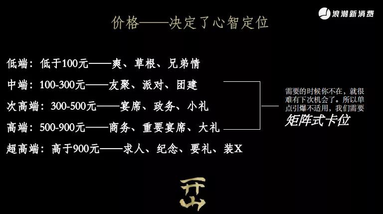 很多人问我们为什么不做单品,因为在白酒消费里面,必须要让客户对整个品牌形成认知,让客户喜欢品牌,从而把它带到各个场合下面。