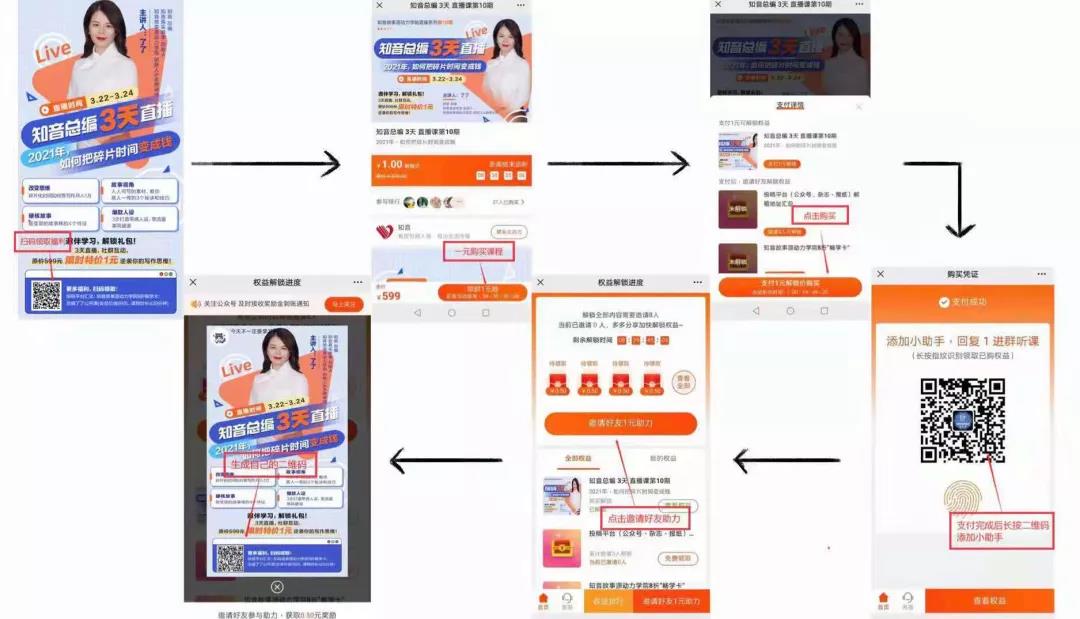 在发现了这一问题之后,立刻制作了分销详细操作图以及短视频,同步到社群内,告诉学员参与活动的详细路径,以及参与分销邀请好友可以获得的利益奖励,顿时激起了学员参与活动的热情。