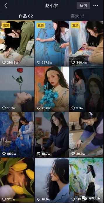 赵小黎所有的视频中,由于几乎都是在绘画,所以不太方便,也不适宜安插剧情。无剧情账号如果搭建其他人设,可能就会导致成本的增加。