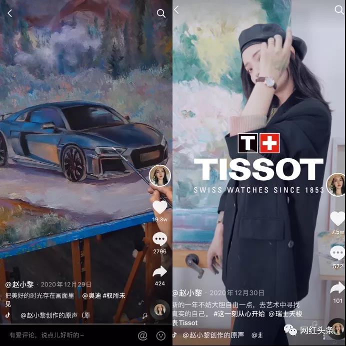 赵小黎的短视频作品中,几乎都是绘画的展示,且这些绘画相关的作品,有着"0剧情"的特点。