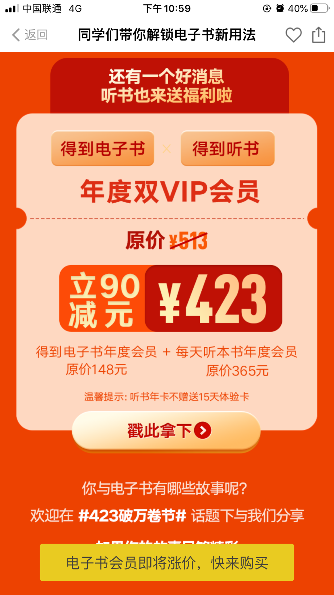 而得到电子书是即听书、少年得到后推出的又一强力产品,本次案例想要拆解得到是运用什么手段去销售这个产品的,看有什么可复用的。