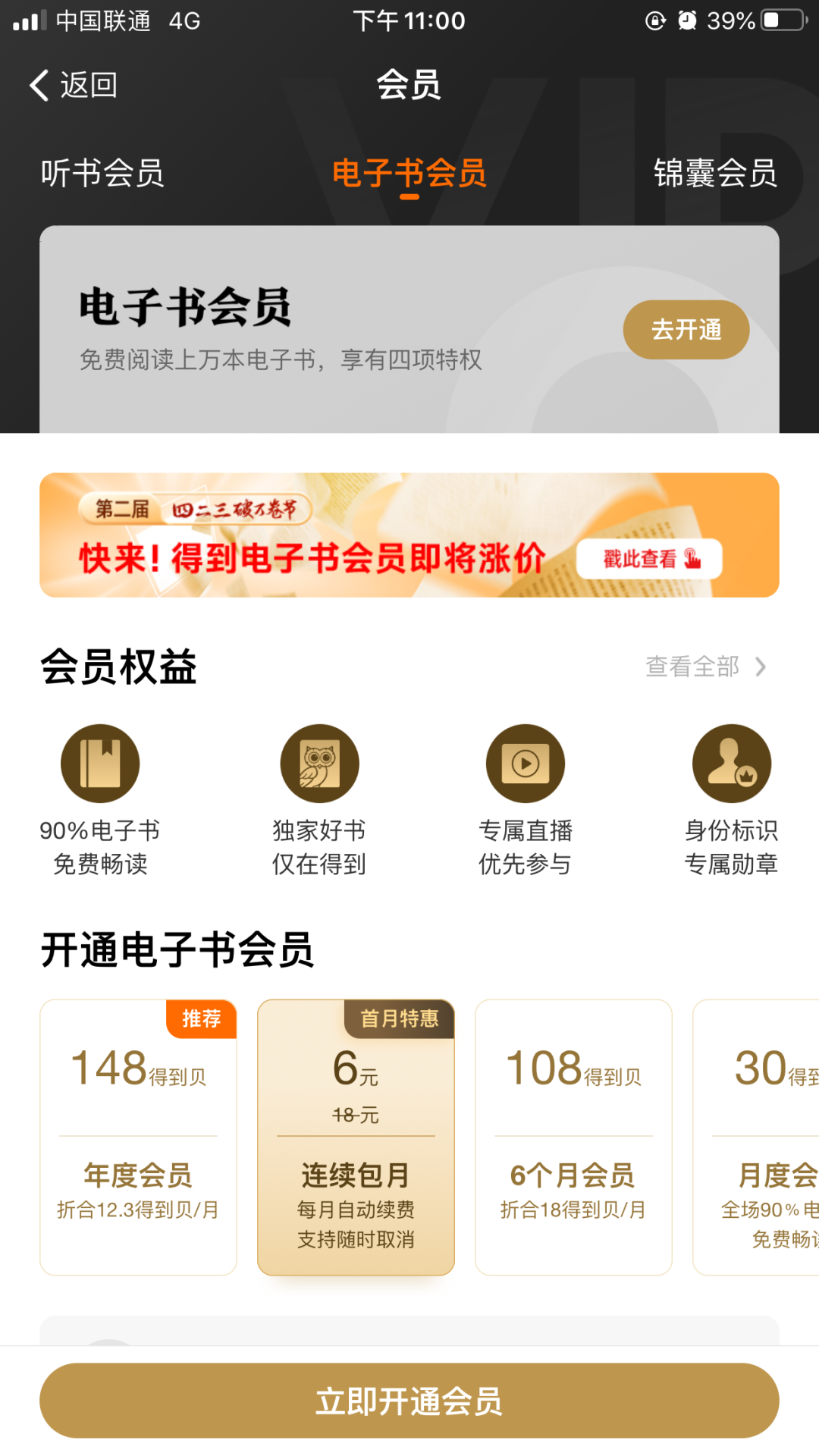 我尝试在多方平台找寻关于电子书会员相关活动的咨询,均无法找到;