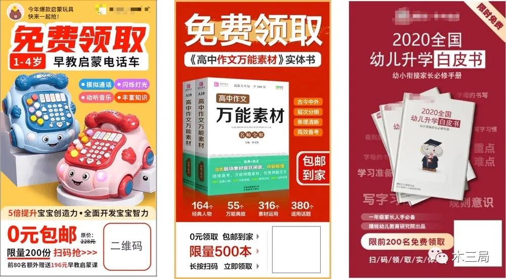 套路引导:常见的送礼品活动,多用"0元""免费""包邮""白拿"等字眼,瞬间勾起用户占有欲。