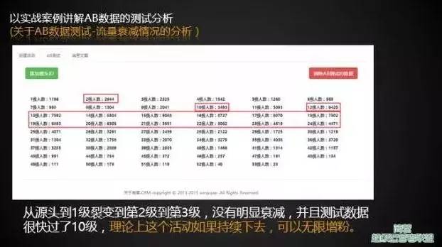 所以给大家的建议是,做裂变活动,10级是一个门槛,如果没有过10级,再回炉优化方案,只有测试裂变超过10级才算是成功的流量杠杆。