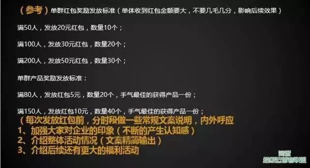 PS:群规的设定一定要让别人知道你是干嘛的、产品是干嘛,红包只是激活工具,不要让大家觉得进群就是来抢红包的,切勿先宾夺主,逐步加强粉丝感知