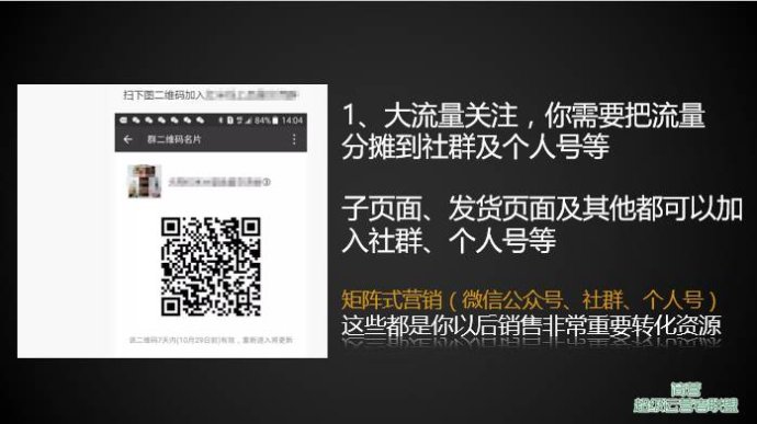 在推吸粉活动的时候,菜单栏、详情页都会有大规模的访问点击,可以把这些流量引导到新的社群/个人号,有利于后续的销售转化