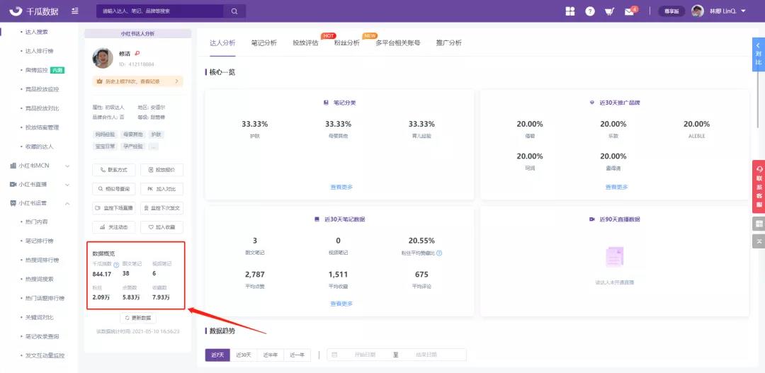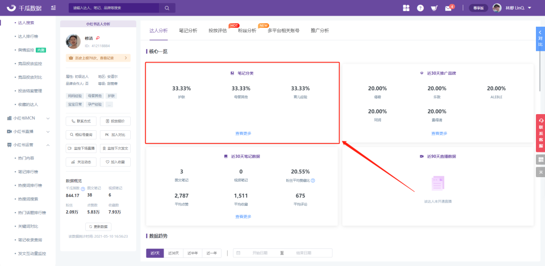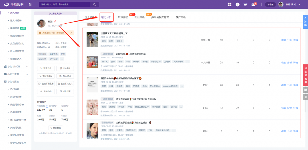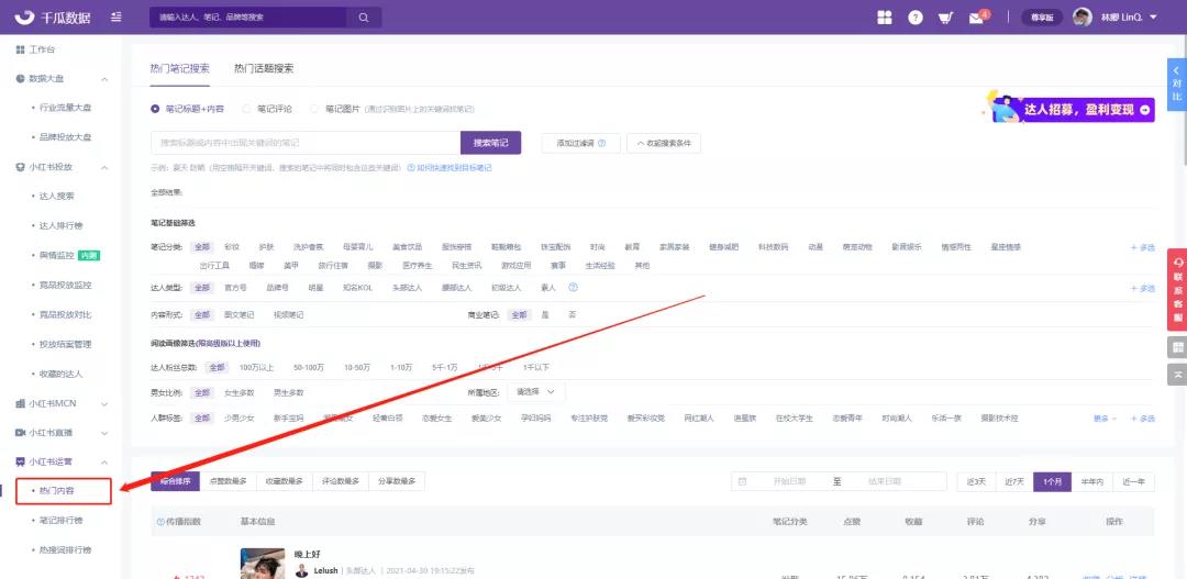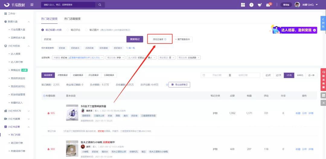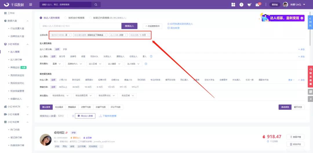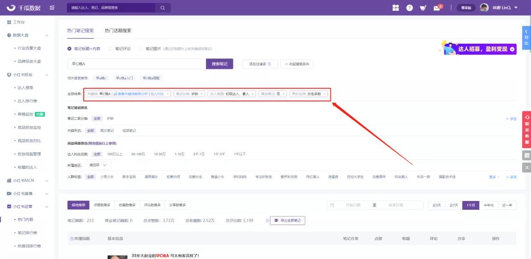 利用千瓜数据筛选优质账号侧重使用它的二个功能,