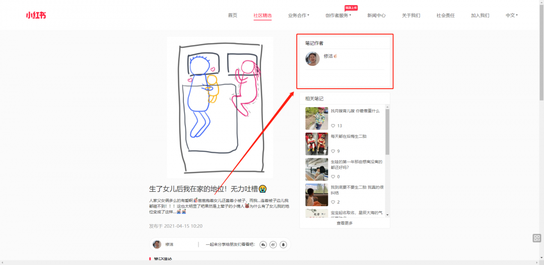 点击一篇笔记,再点击"查看详情",跳转至笔记页。