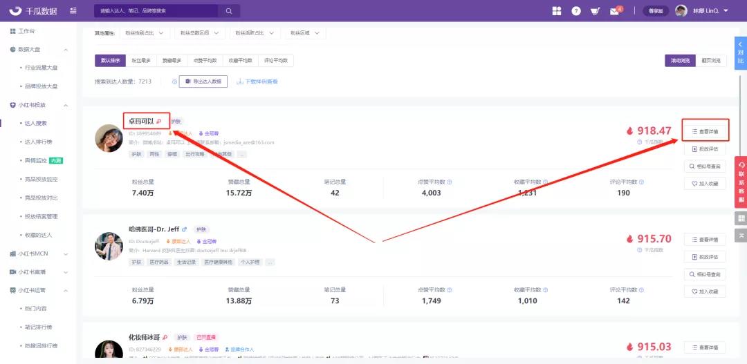 所以,可多筛选一些符合的达人,点击查看"达人详情",