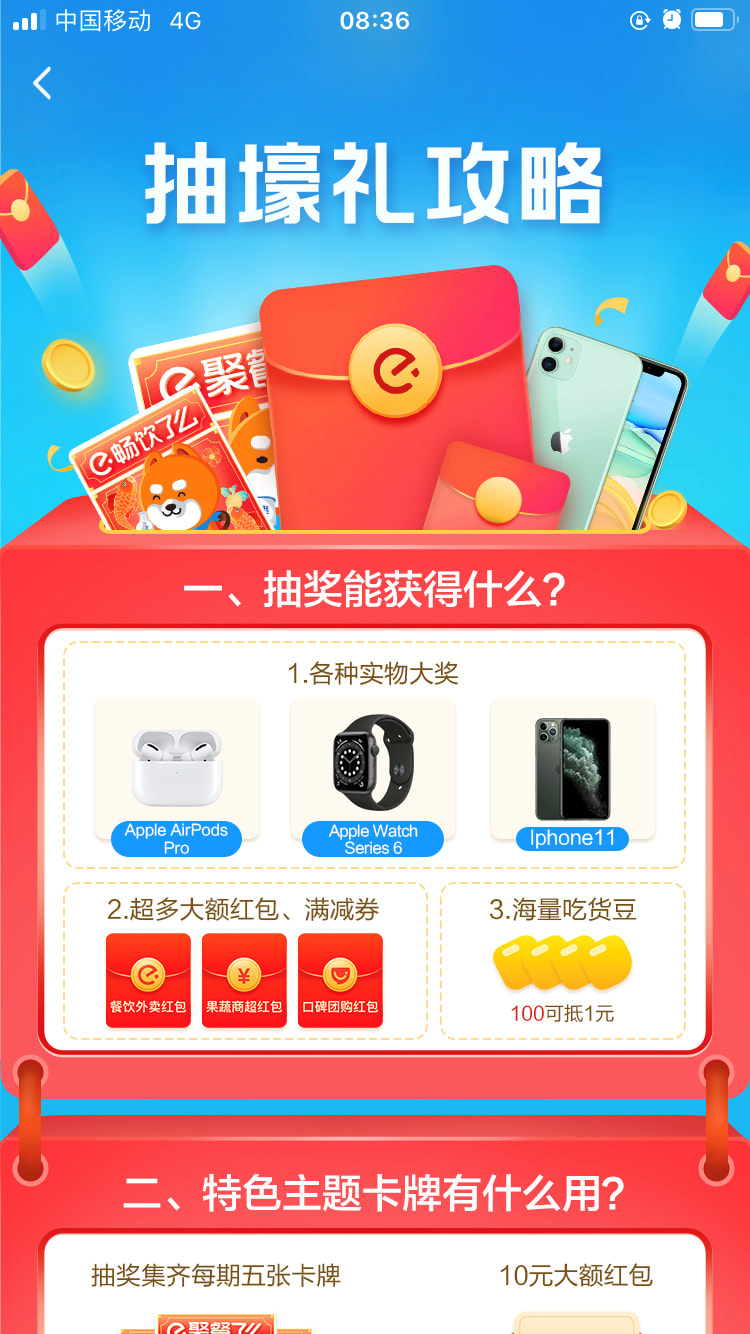 不少用户都知道可以使用吃货豆兑换不同权益,如更大的无门槛外卖红包,平时一般只有在点外卖的时候才能获得,且比例换算为1:100,每次点外卖金额算下来100元只能拿1元。所以这次狂撒1亿吃货豆做补贴,能让用户获得大量吃货豆,少量吃货豆兑换大惊喜。