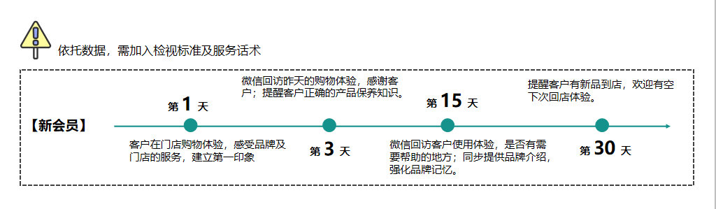 行业和企业的特点不同,新会员的场景和话术特点均需要企业的会员管理负责人提前梳理并进行终端培训: