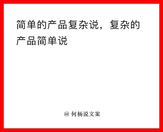 当你在写文案的时候,如果是复杂的产品,我们尽可能把文案简单化,这样用户更容易理解。相反,如果简单的产品,我们尽量多描述细节,让用户觉得我们产品更加专业。