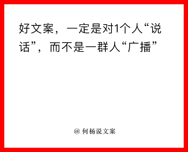 你觉得你会被那句话吸引?肯定第二句对吧,为什么呢?第二句更像是跟你一个人在说话、在聊天是不是?所以记住,好文案一定要找到一对一聊天的感觉!