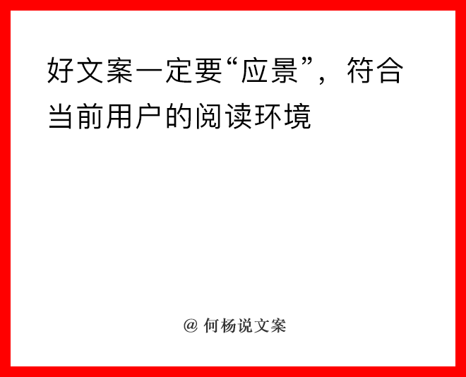 前面我们说了,好的文案要找到一对一聊天的感觉,那么,既然是一对一聊天,有一个问题就非常重要了,就是你的文案一定要应景,要符合当前用户的阅读环境。