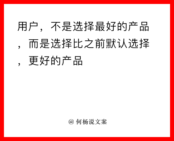这个世界上,没有最好的产品,只有用户认为的更好产品!所以,高手写文案,不会想着把自己的产品,吹成天下无敌,他们想的是告诉用户,我们的产品,比你之前用的产品好一点,就这么简单。