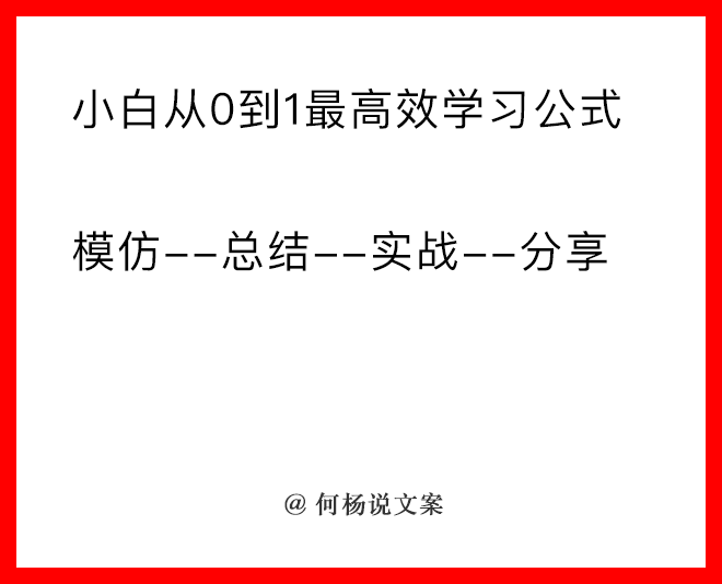 你看,当你一开始不会做的时候,最好的办法就是去模仿,这样你能少走很多弯路。但是仅仅模仿就够了吗?不够。模仿完,你还要总结,比如上面提到的,提炼标题句式、写作框架等等,这些都是需要你自己去总结,举一反三,固化成自己的东西。