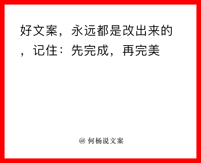 所以,写文案之前,不要有太大的思想包袱,必须一次完成,你就想象成是和朋友的一次聊天,怎么聊就怎么写。记住,凡是先完成,再去完美。