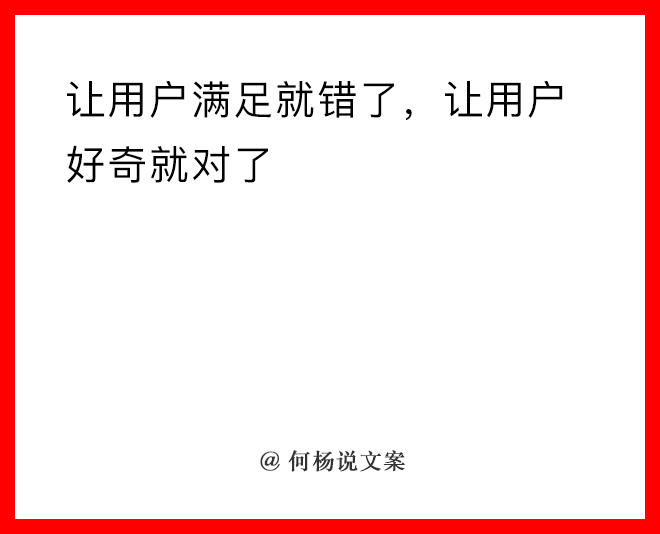 所以,不要以为你在文案里面,把所有的干货都分享完了,用户就会行动。错,只有让他好奇,他才会有足够的行动欲望。