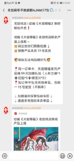 所以名创优品的策略是,在群里经常会推出宠粉活动,活动高频几乎达到天天见的程度,诸如新品尝鲜打折、专区2件79折,99-20优惠券等。