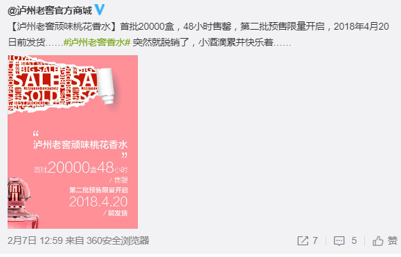 在香水卖到断货后,泸州老窖又尝试了与国货美妆品牌花西子进行了跨界营销合作,将低度果酒桃花醉与花西子蜜粉捆绑营销。
