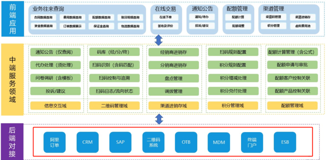 于是在MarTech服务商滴普科技的帮助下,企业进行整个渠道管理系统的升级,通过搭建一个"中台"系统,对内打通各部门系统数据,对外统一经销商入口,整合商品进销存信息。