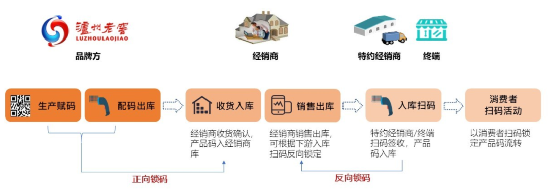 2018年,泸州老窖开始推进"一物一码"的建设,实现瓶、箱、盒、盖以及物流,五码关联,开设前端公众号、小程序应用。