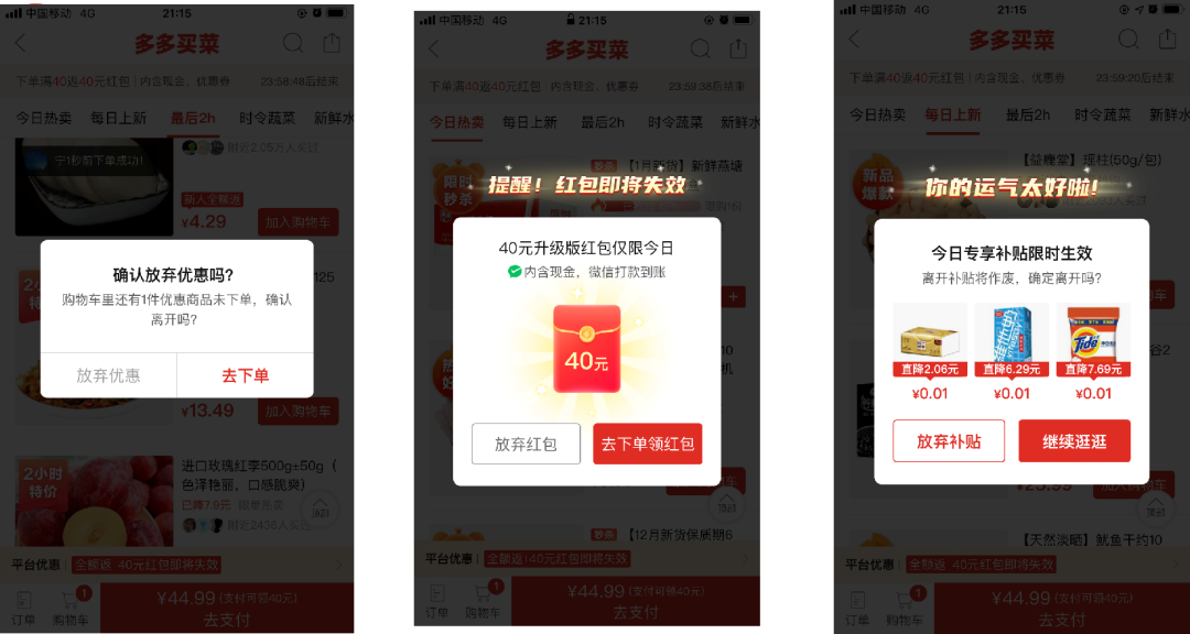 2.弹窗的样式在不断迭代,减少消费者审美疲劳,文案上在布局上突现卖点与行动点。