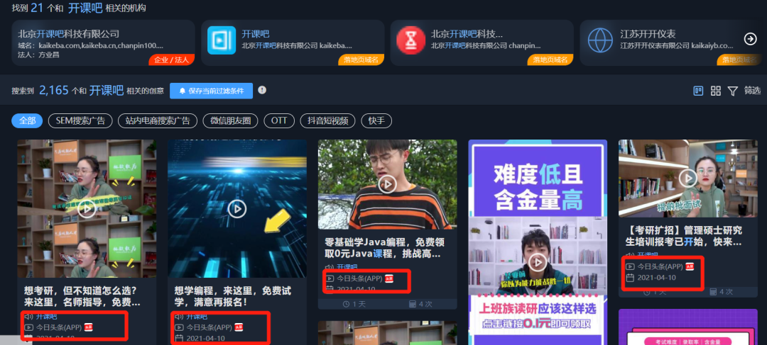 今日头条、微信朋友圈、自媒体公众号、短视频投放(抖音、快手)等,主要是这几个平台,短视频投放主要以0元或低价课程导流。