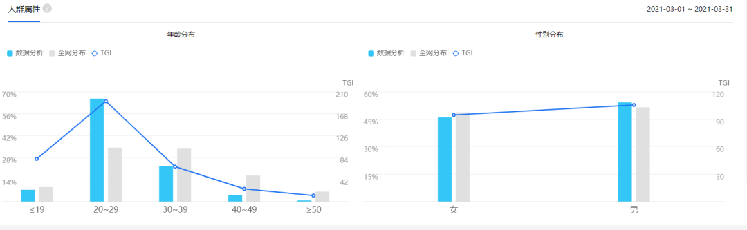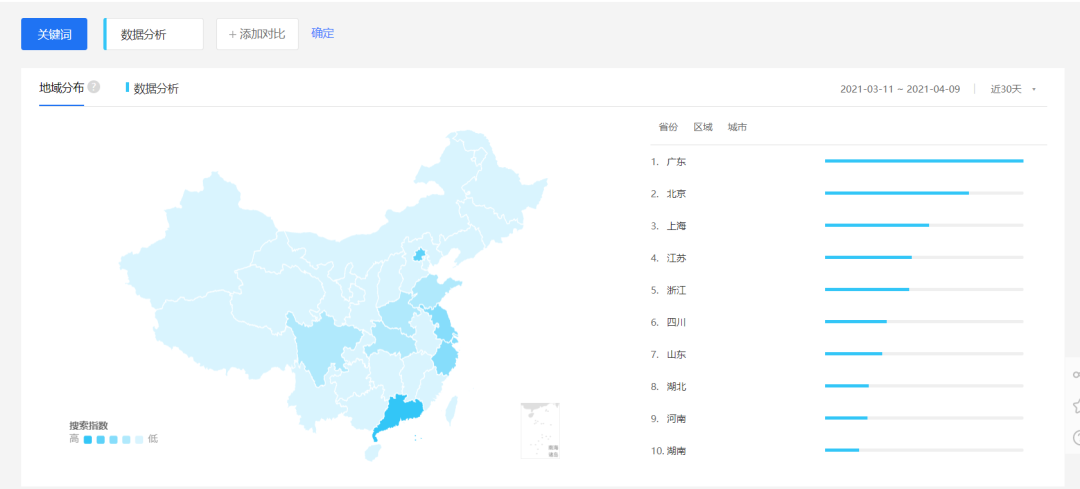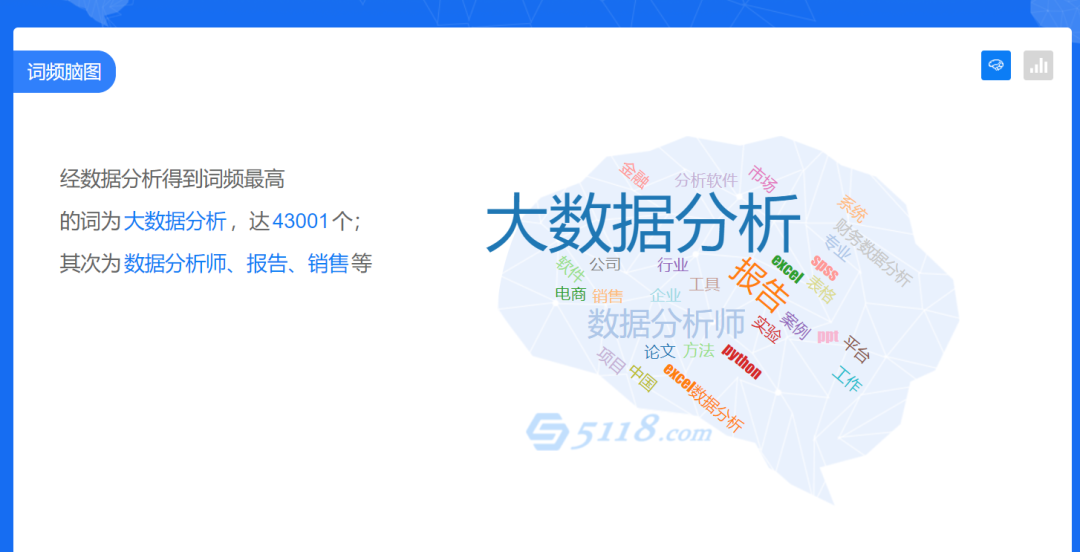 根据百度指数和5118数据显示,北上广深等一线城市对数据分析技能的需求较高,用户年龄段主要集中在20-29岁之间,男女比例相差不大。其中,数据分析主要用在数据分析师、报告、销售、电商等行业,覆盖面广。