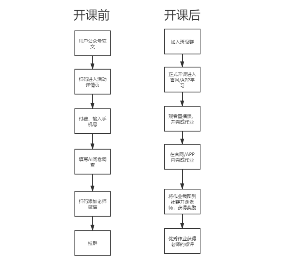 留存——主要指学员能全部完课和完成作业,此处指上课体验环节