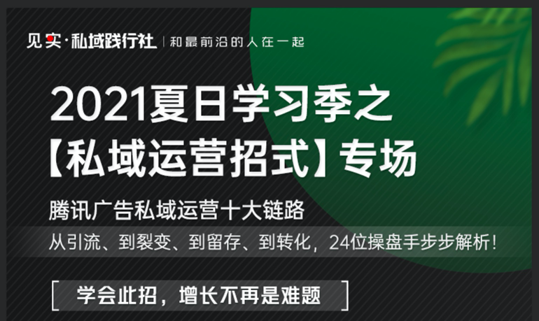 见实从整个5月份到6月初,一口气约了24位私域运营专家,以腾讯广告提出的“私域运营十大链路”为基础,发起了最佳【私域运营招式】线上大直播专场。