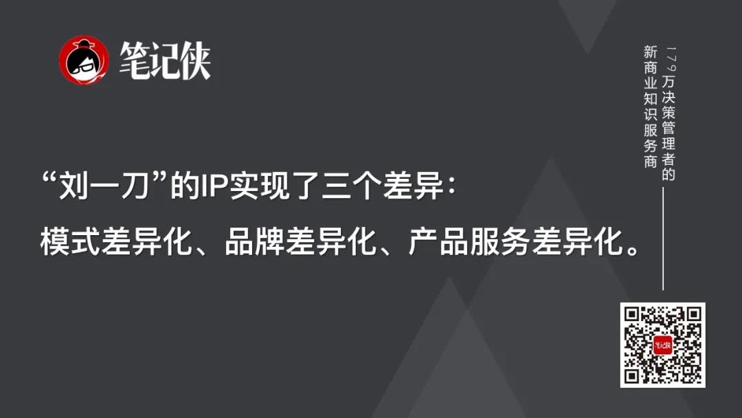 "刘一刀"的IP实现了三个差异:模式差异化、品牌差异化、产品服务差异化。