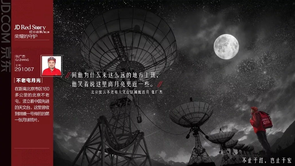 这组海报从六万多个京东小哥当中甄选出十一个典型故事,为了还原故事的真实情景,最终采用了小哥自己讲述的文字。因为最淳朴真实的语言最具感染力。