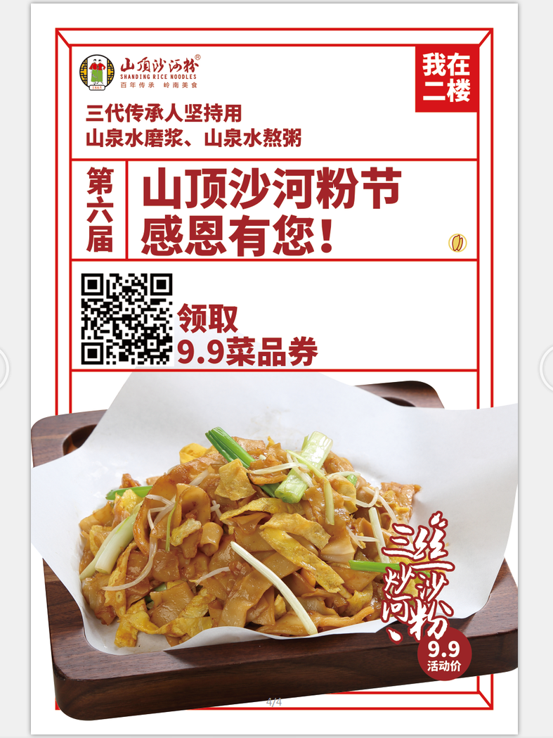 因为「山顶沙河粉」旗下有18家门店,每一家门店所服务的周边3公里顾客喜好存在一定的差异,所以在活动执行的时候,总部采取了“先试点后推广”的方式来推进活动。