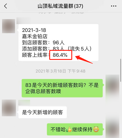 ①:单个门店私域最高引流数据:85人/天