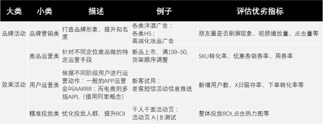 针对不同类型活动:关注点,分析点也不同,后续制定出有业务针对性的分析框架与思路需要因地制宜。